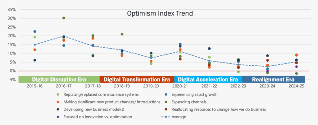 This shift to aligning the operating model and technology to meet the demands of a new era of risk is reflected in Figure 2, which highlights a shift in optimism from the last couple of years during what we have called the Realignment Era.